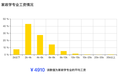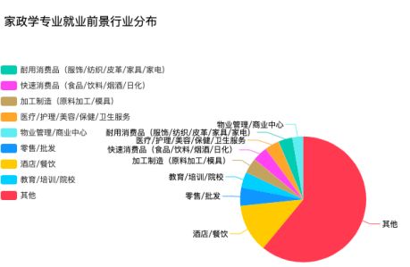 但是从智联招聘网站统计看来,家政学专业的就业前景在所有专业中排行第689位,就业岗位也还是多集中于家政公司。数据分析结果表明,家政学专业毕业生月平均工资约4910元。其中,家政学专业毕业生工资差距分层严重:最低月工资约2776元,最高月工资则达到了48000元以上。18.3%的该专业毕业生选择在广东发展。数据也表明,转专业的毕业生同样不在少数。
