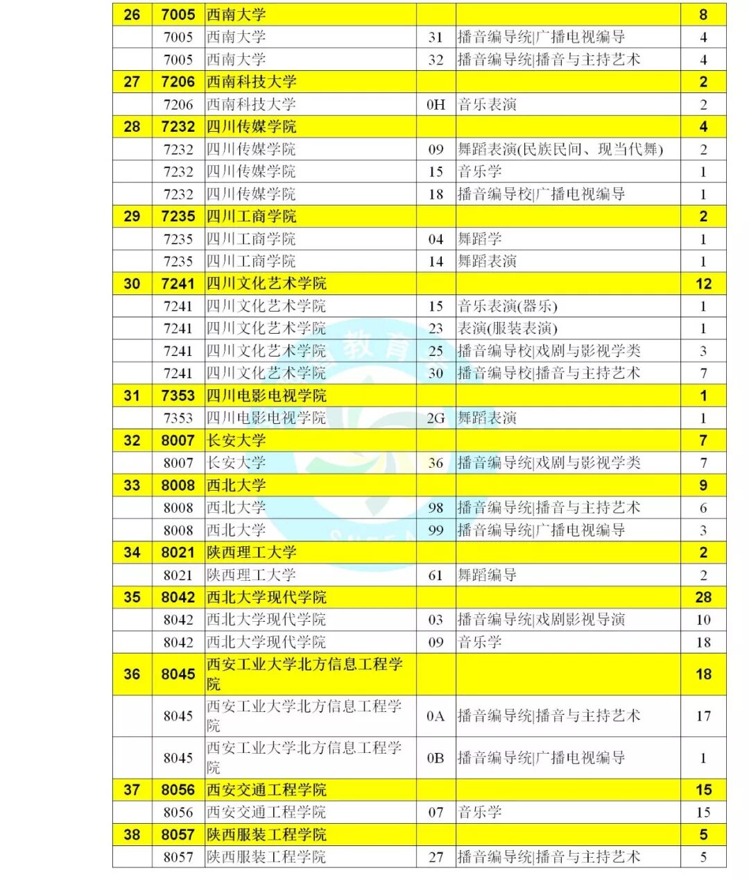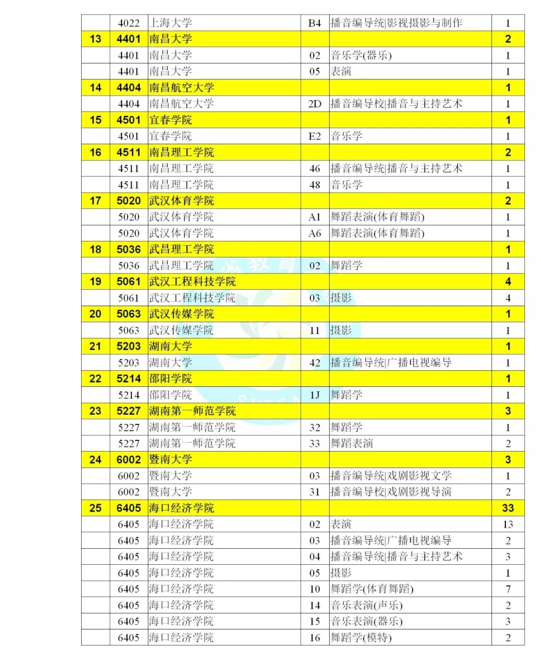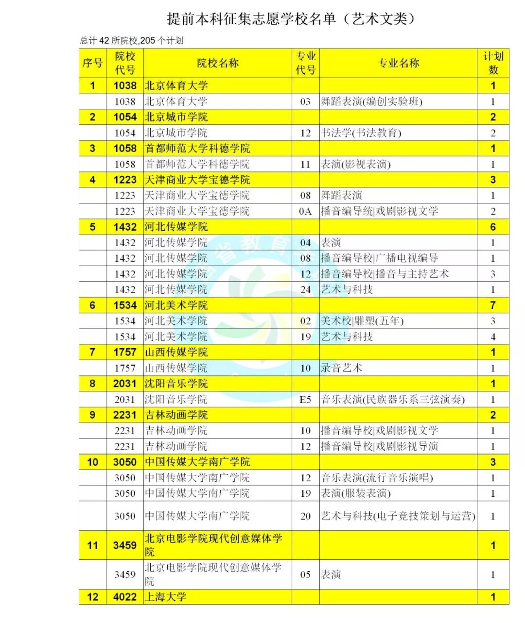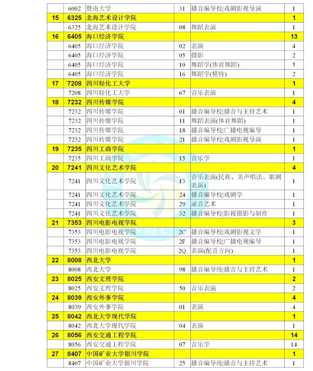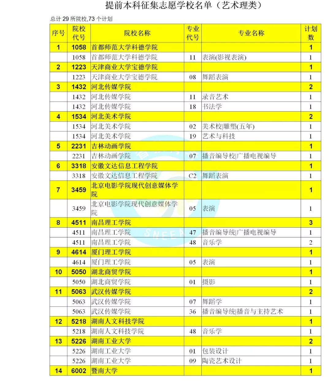 艺术类本科C段征集志愿学校名单(文)