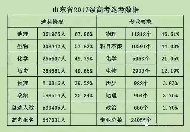 山东选考地理的最多,天津选考生物最多,化学次之,2021年实行新高考的地区,选考生物的最多,物理此之。
